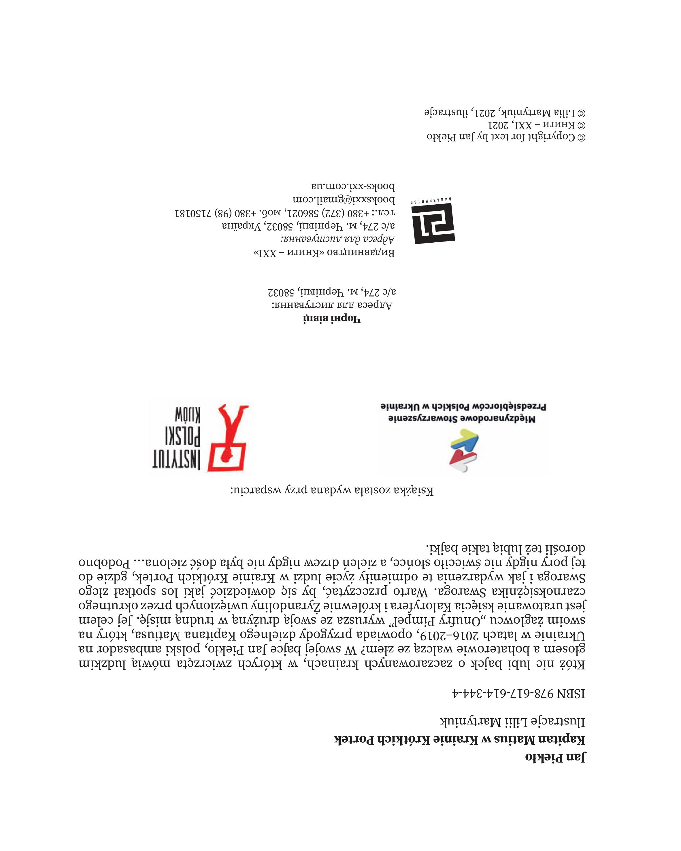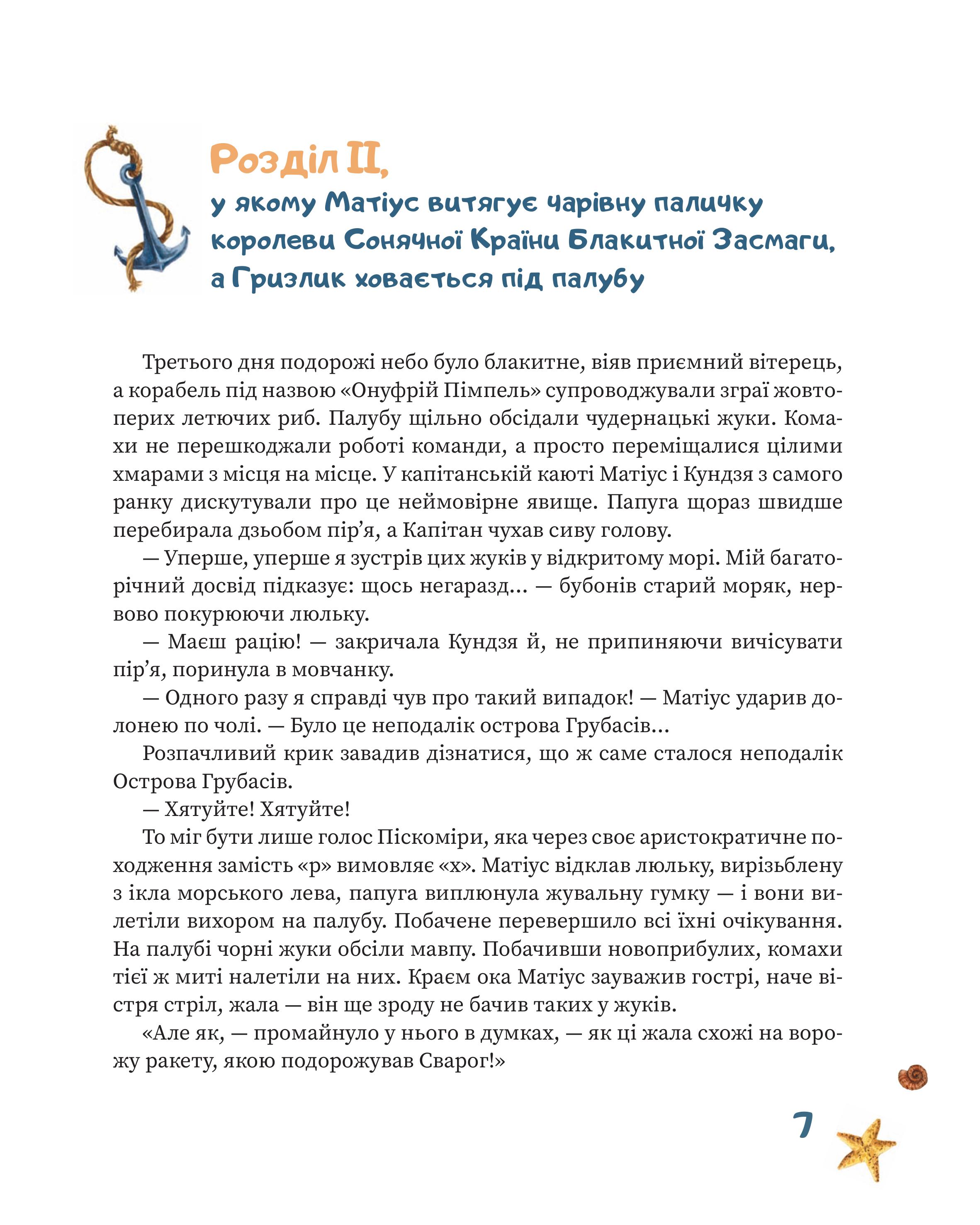 Хто не любить казок про чарівні країни, де тварини говорять людським голосом, а герої борються зі злом? У своїй казці Ян Пєкло, посол Польщі в Україні у 2016–2019 роках, розповідає про пригоди відважного капітана Матіуса, який на власному вітрильнику «Онуфрій Пімпель» вирушає разом із командою на складну місію. Його мета — врятувати принца Калорифера та принцесу Жирандоліну, увʼязнених жорстоким чаклуном Сварогом. Казку варто почитати, щоб дізнатися, яка доля спіткала злого Сварога і як ці події змінили життя людей у Країні Коротких Штанців, де ніколи не світило сонце, а листя дерев ніколи не було достатньо зеленим... Мабуть, дорослі теж люблять такі казки.