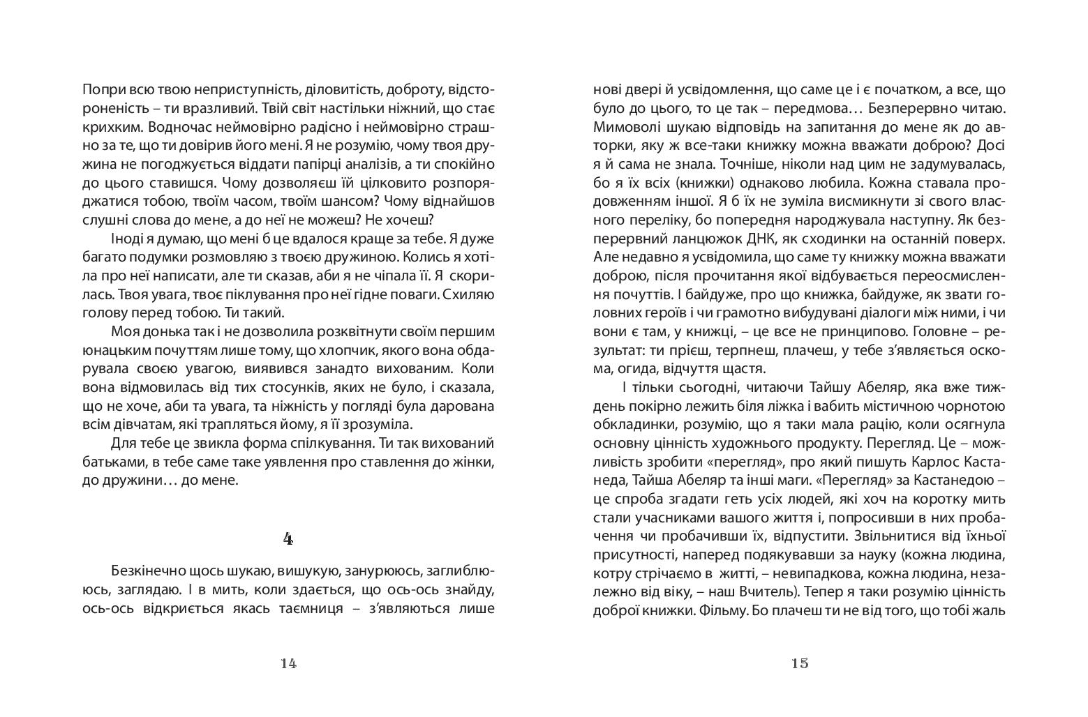 Роман Христини Лукащук наповнений життям жінки з добре сформованим характером, з доброю освітою, з мистецькими зацікавленнями, з різноманітними уподобаннями, з вітальною реакцією на позитивні вияви середовища, з чітким розмежуванням «люблю-не люблю», зі стійким розумінням, який він має бути насправді – чоловік у любові.