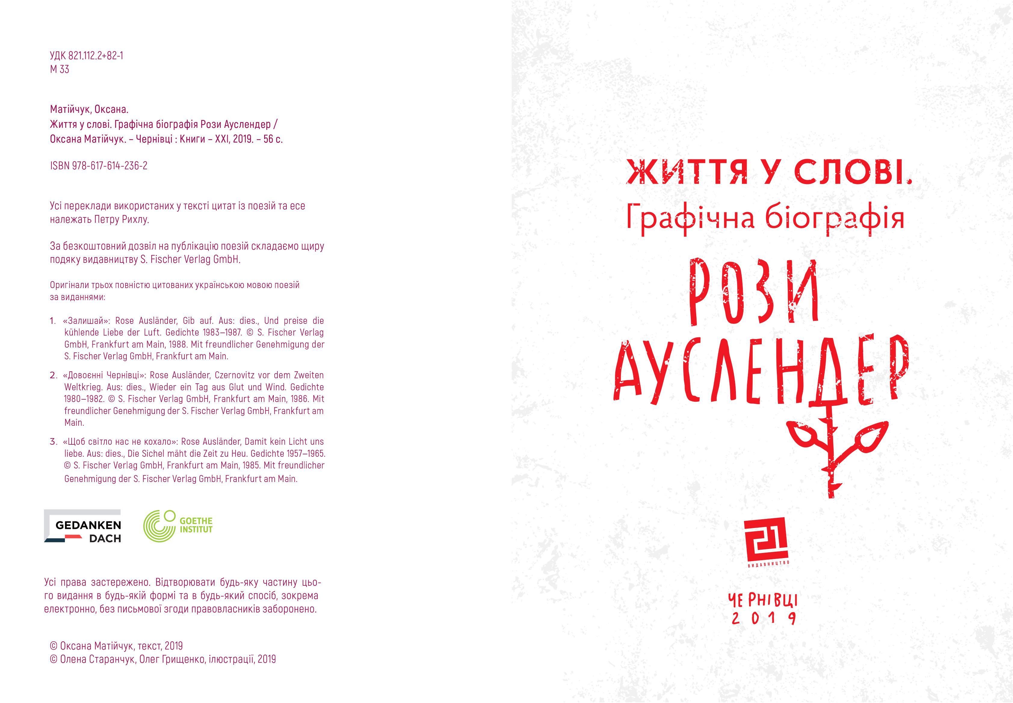 Графічна біографія Рози Ауслендер, написана Оксаною Матійчук, візуально інтерпретована та втілена Оленою Старанчук і Олегом Грищенком, занурить читача у світ поетеси і зробить подорож ним незабутньою.
